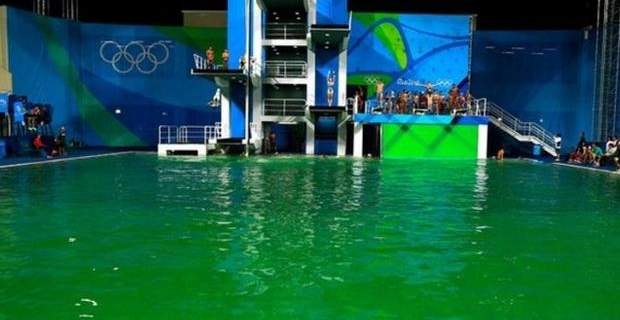 Το πράσινο χρώμα του νερού σε μία από τις πισίνες όπου πραγματοποιούνταν αγώνες συγχρονισμένων καταδύσεων στο Ρίο ανησύχησε αθλητές και παράγοντες χωρών, καθώς και με πρόσφατες τις συζητήσεις σχετικά με το μολυσμένο νερό στα νερά της βραζιλιάνικης πόλης όπου πραγματοποιούνται αθλήματα για τους Ολυμπιακούς, πολλοί μίλησαν για κίνδυνο για τους αθλητές.