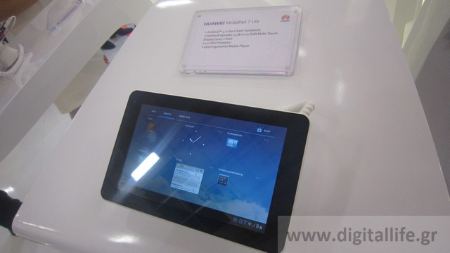 Τo παρόν έδινε επίσης η ταμπλέτα MediaPad 7 Lite με 7ιντση IPS οθόνη WSVGA (1024×600 pixels), επεξεργαστή CortexA8 1.2GHz, 1GB RAM, κάμερα 3.2MPixels, flash memory 8GB και μπαταρία 4.100mAh.