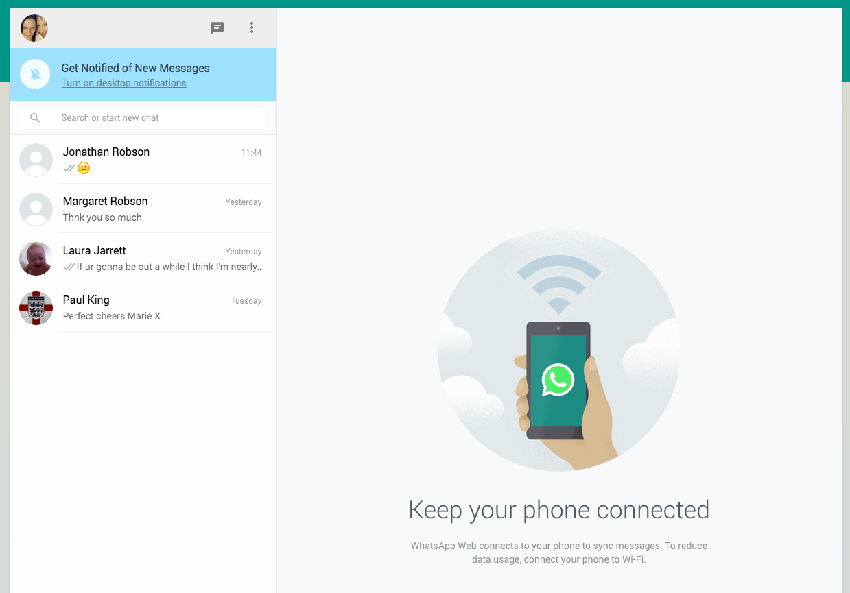 Στις αρχές του 2015, το WhatsApp ξεκίνησε να είναι διαθέσιμο μέσω web, δίνοντας έτσι άλλο ένα μέσο για πρόσβαση στην εφαρμογή. Πρόσφατα έγιναν κάποιες ενημερώσεις στην εφαρμογή για web όπου απέκτησε αρκετά νέα χαρακτηριστικά, και τις οποίες εντόπισε το Android Police.