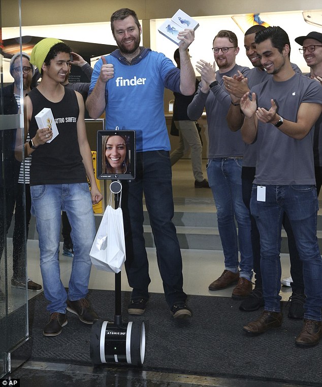 Ένα robot droid που ελεγχόταν από ένα iPad από απόσταση είχε καταλάβει την τέταρτη θέση στην ουρά, περιμένοντας εκ μέρους της… ιδιοκτήτριάς του.