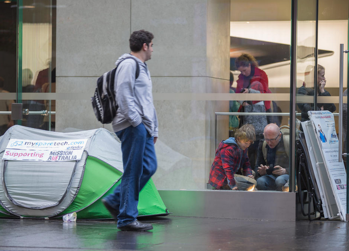 Στην ίδια πόλη ο Lindsay Handmer κοιμόταν σε σκηνή 17 μέρες αναμένοντας τις νέες συσκευές και συγκεντρώνοντας παράλληλα χρήματα για φιλανθρωπία.