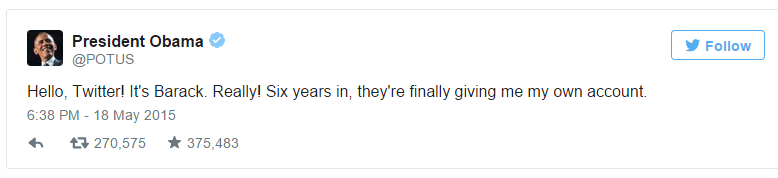 Η επιρροή του Barack Obama στο Internet δεν είναι αμελητέα και η εμφάνισή του προσωπικού του λογαριασμού στο twitter μόνο απαρατήρητη δεν πέρασε.