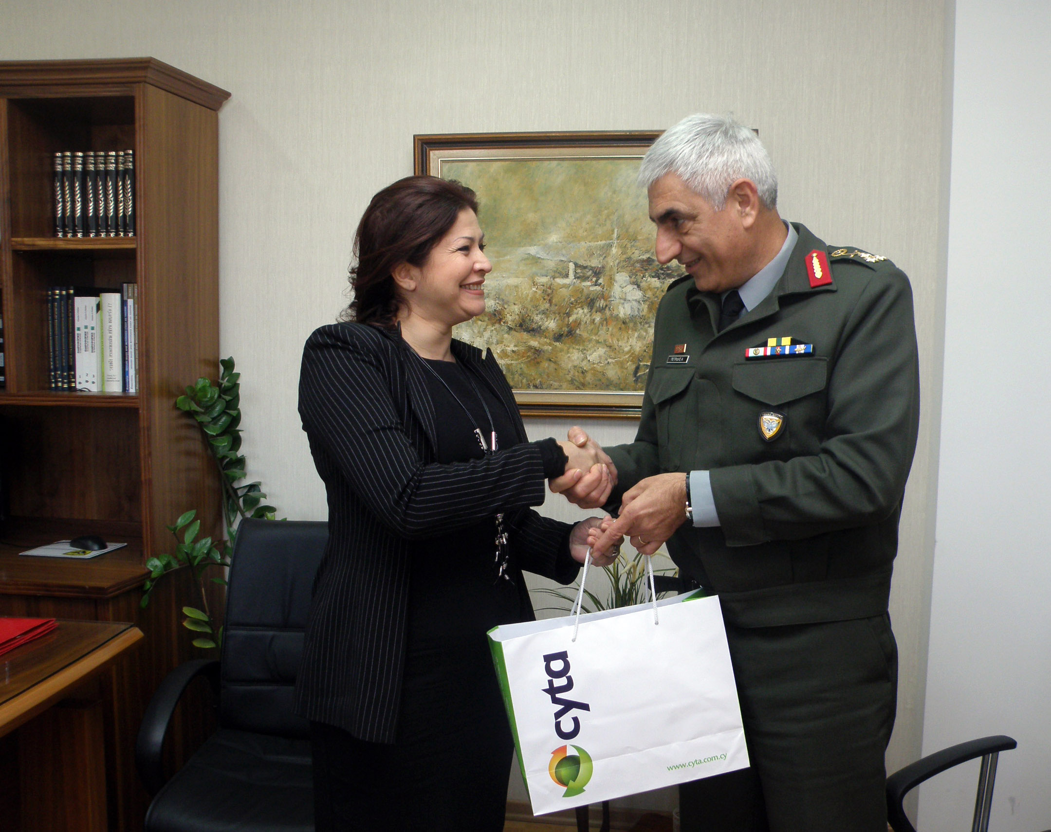 Με την ευκαιρία των γιορτών των Χριστουγέννων, η Cyta, πρόσφερε δωρεάν τηλεκάρτες αξίας €10 η κάθε μια, για να δοθούν σε άπορους οπλίτες της Εθνικής Φρουράς. Τις τηλεκάρτες παρέλαβε ο Υπαρχηγός της Εθνικής Φρουράς Αντιστράτηγος Ανδρέας Πετρίδης, ο οποίος ευχαρίστησε τη Cyta για τη συνεχή της στήριξη προς τους εθνοφρουρούς μας. Εκ μέρους της Cyta η κ. Αλεξία Γιαλλουρίδου της Διεύθυνσης Επικοινωνία & Δημόσιες Σχέσεις, επαναβεβαίωσε ότι η Cyta θα βρίσκεται πάντοτε στο πλευρό της Εθνικής Φρουράς.