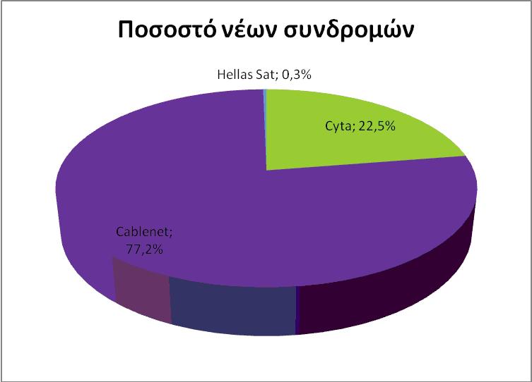 Η Cablenet εξακολουθεί να διατηρεί την πρωτιά στην αγορά των ευρυζωνικών υπηρεσιών με ποσοστό 77,2% στις νέες ευρυζωνικές συνδρομές, μια τεράστια διαφορά σε σύγκριση με τους υπόλοιπους παροχείς της αγοράς.