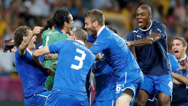 Οι δύο ομάδες οδηγήθηκαν στην παράταση όπου αμφότερες ήταν πολύ προσεκτικές, δίνοντας βάση πρώτα στην άμυνα. Ουσιαστική ευκαιρία δεν σημειώθηκε και έτσι καταλήξαμε στη «ρώσικη ρουλέτα» των πέναλτι. Εκεί, ο Montolivo έχασε το δεύτερο πέναλτι για τους Ιταλούς, ωστόσο το ίδιο συνέβη και με το τρίτο του Young για τους Άγγλους –είχε ισοφαρίσει στο μεταξύ σε 2-2 ο Pirlo με εκτέλεση αλά-Panenka. Ο Nocerino έκανε το 3-2 για την Ιταλία, ο Buffon έπιασε το πέναλτι του Cole και ο Diamanti ευστοχώντας στο φινάλε, έκανε το 4-2, στέλνοντας την Ιταλία στα ημιτελικά και την Αγγλία σπίτι της.