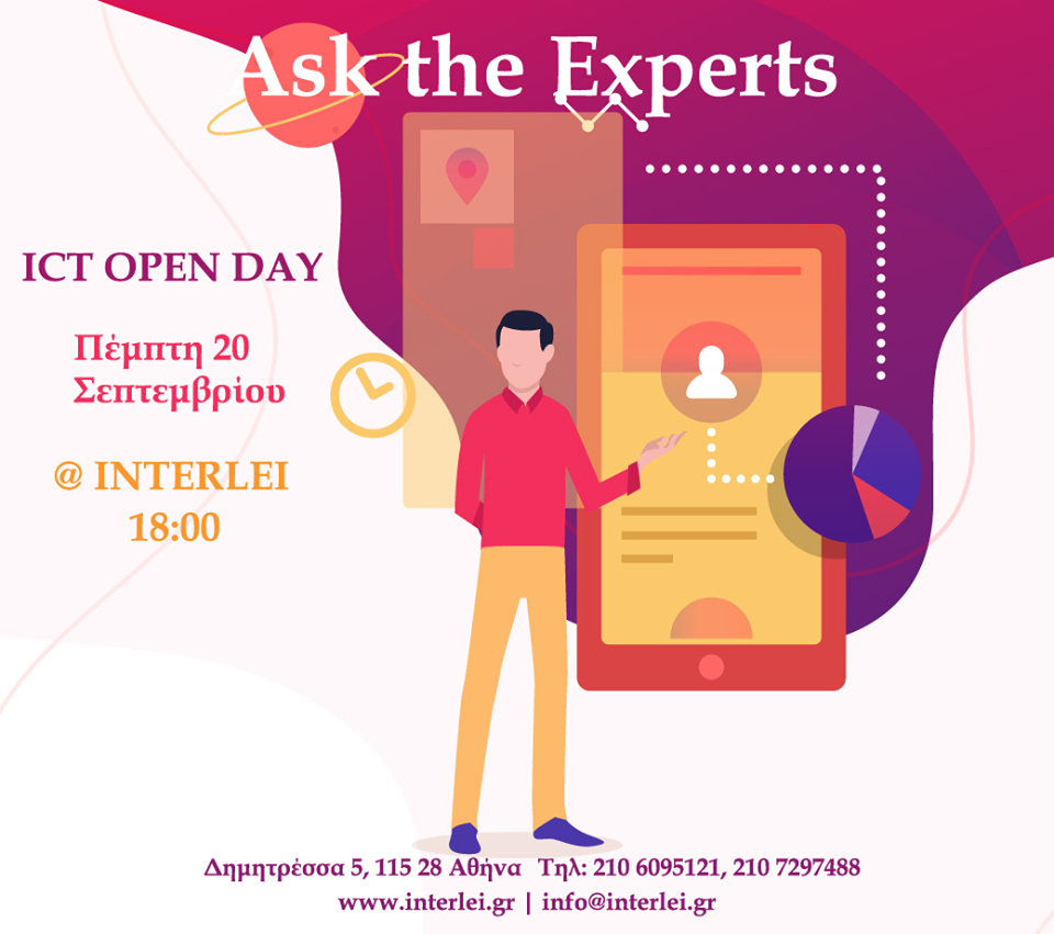 Την Πέμπτη 20 Σεπτεμβρίου και ώρα 18:00 διοργανώνει για 4η συνεχή χρονιά στις εγκαταστάσεις της το 4ο ICT OPEN DAY με τίτλο ASK THE EXPERTS.