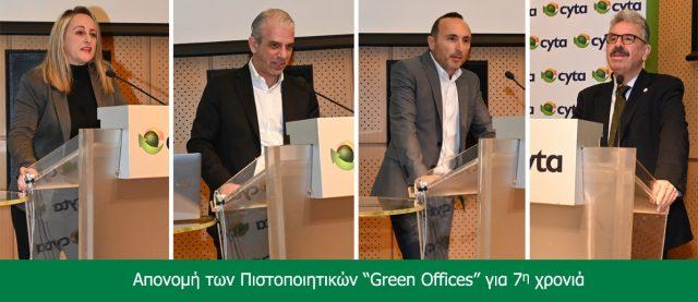 Σε εκδήλωση που πραγματοποιήθηκε σήμερα (Τετάρτη 22 Φεβρουαρίου 2023), στη Λευκωσία, η Cyta ανανέωσε την πιστοποίηση «Green Offices» για 7η συνεχή χρονιά και έγινε ο μοναδικός Οργανισμός στην Κύπρο που το πετυχαίνει για συνολικά 50 στελεχωμένα κτίρια και καταστήματα εξυπηρέτησης πελατών.