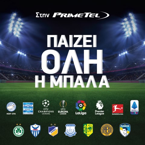 Νέα συνδρομητικά πακέτα που περιλαμβάνουν όλη την αγωνιστική δράση του Κυπριακού Πρωταθλήματος και αγώνες από τα πιο δημοφιλή ευρωπαϊκά πρωταθλήματα ποδοσφαίρου καθώς και πλούσιο ψυχαγωγικό περιεχόμενο για όλη την οικογένεια ανακοινώσε σήμερα η PrimeTel.