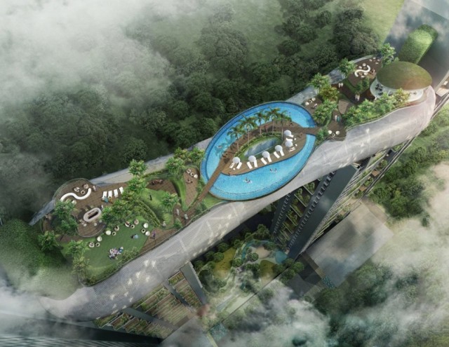 Το συγκεκριμένο project ετοιμάζεται να ανεγερθεί στην Καλκούτα, στην Ινδία και η κεντρική του ιδέα είναι η δημιουργία ενός χώρου στην κορυφή δύο ουρανοξυστών που θα φιλοξενούν κατά κύριο λόγο κατοικίες.