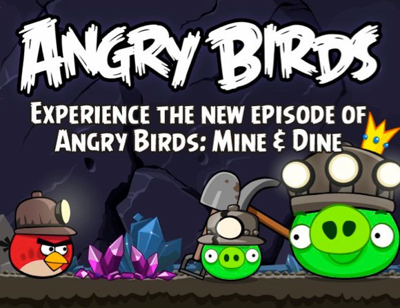 Η εταιρεία Rovio κυκλοφόρησε το νέο update για το Angry Birds στο App Store την περασμένη Παρασκευή που λέγεται «Angry Birds Mine and Dine». Στα 15 levels, ο παίκτης βλέπει τα πεινασμένα γουρουνάκια να κρύβονται σε υπόγειες σπηλιές προκειμένου να κρύψουν τα αυγά που έχουν κλέψει. Ο παίκτης πρέπει να εκμεταλλευτεί το τοπίο και τα χαρακτηριστικά του εδάφους, όπως τους σταλακτίτες, για να ξεθάψει τα γουρουνάκια από τις κρυψώνες τους. Στην πορεία συναντάει και πολλά συλλεκτικά κοσμήματα.Εσείς, πόσο γρήγορα θα το τερματίσετε;;;