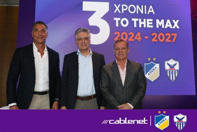 Την επέκταση της συνεργασίας με τις ιστορικές ποδοσφαιρικές ομάδες του ΑΠΟΕΛ και της Ανόρθωσης μέχρι το καλοκαίρι του 2027, ανακοίνωσε και επίσημα η Cablenet, σε εκδήλωση που πραγματοποιήθηκε χθες το πρωί ( Τετάρτη 3/5/2023) στη Λευκωσία.