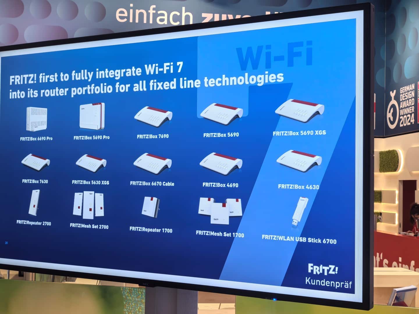 Στην IFA 2025, το μεγάλο αστέρι της AVM ήταν το FRITZ!Box 6690 Pro. Πρόκειται για το νέο κορυφαίο router της εταιρείας για καλωδιακές συνδέσεις, το οποίο υποστηρίζει το νέο πρότυπο Wi–Fi 7 και προσφέρει tri-band λειτουργία με ταχύτητες που φτάνουν έως και 12 Gbit/s. Εκτός από τις κορυφαίες επιδόσεις στο ασύρματο δίκτυο, ενσωματώνει τηλεφωνικό κέντρο VoIP, υποστήριξη για αναλογικές και DECT συσκευές, καθώς και συμβατότητα με το πρωτόκολλο Zigbee για τον έλεγχο smart home συσκευών. Ως είθισται, το FRITZ!OS εξασφαλίζει πρόσβαση σε λειτουργίες όπως VPN, γονικοί έλεγχοι και media server, κάνοντας το FRITZ!Box 6690 Pro ένα πραγματικό «όλα σε ένα» για το σύγχρονο σπίτι.