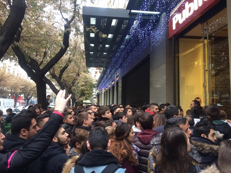 Στη Θεσσαλονίκη, όπως διαβάζουμε στο ThessNews και βλέπουμε στο σχετικό video, πάνω από 2.000 άτομα στήθηκαν έξω από το κατάστημα Public της Τσιμισκή, αλλά και σε κατάστημα σε γνωστό εμπορικό κέντρο.