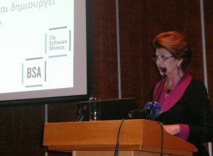 Εκ μέρους του Business Software Alliance η κ. Μαρία Κυριακού, από το δικηγορικό οίκο Ανδρέας Νεοκλέους & Σία ΔΕΠΕ, ανέφερε ότι : «Με τη σημερινή Ημερίδα ξεκινά μια εβδομάδα ενημέρωσης των επιχειρήσεων για τη σημασία της προστασίας και της χρήσης του νόμιμου λογισμικού προγράμματος στους ηλεκτρονικούς υπολογιστές των επιχειρήσεων και τις οικονομικές απώλειες σε περίπτωση χρησιμοποίησης μη εξουσιοδοτημένων, παράνομων λογισμικών, τόσο για τις ίδιες τις επιχειρήσεις όσο και για την οικονομία, την απώλεια εσόδων του κράτους και την απώλεια θέσεων εργασίας.»