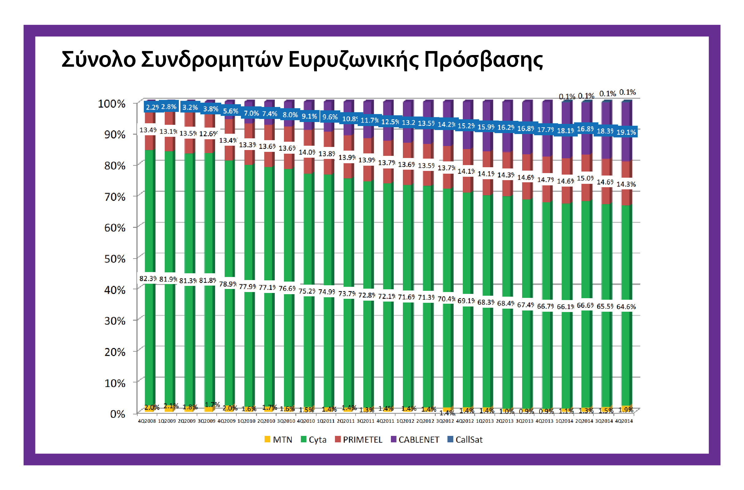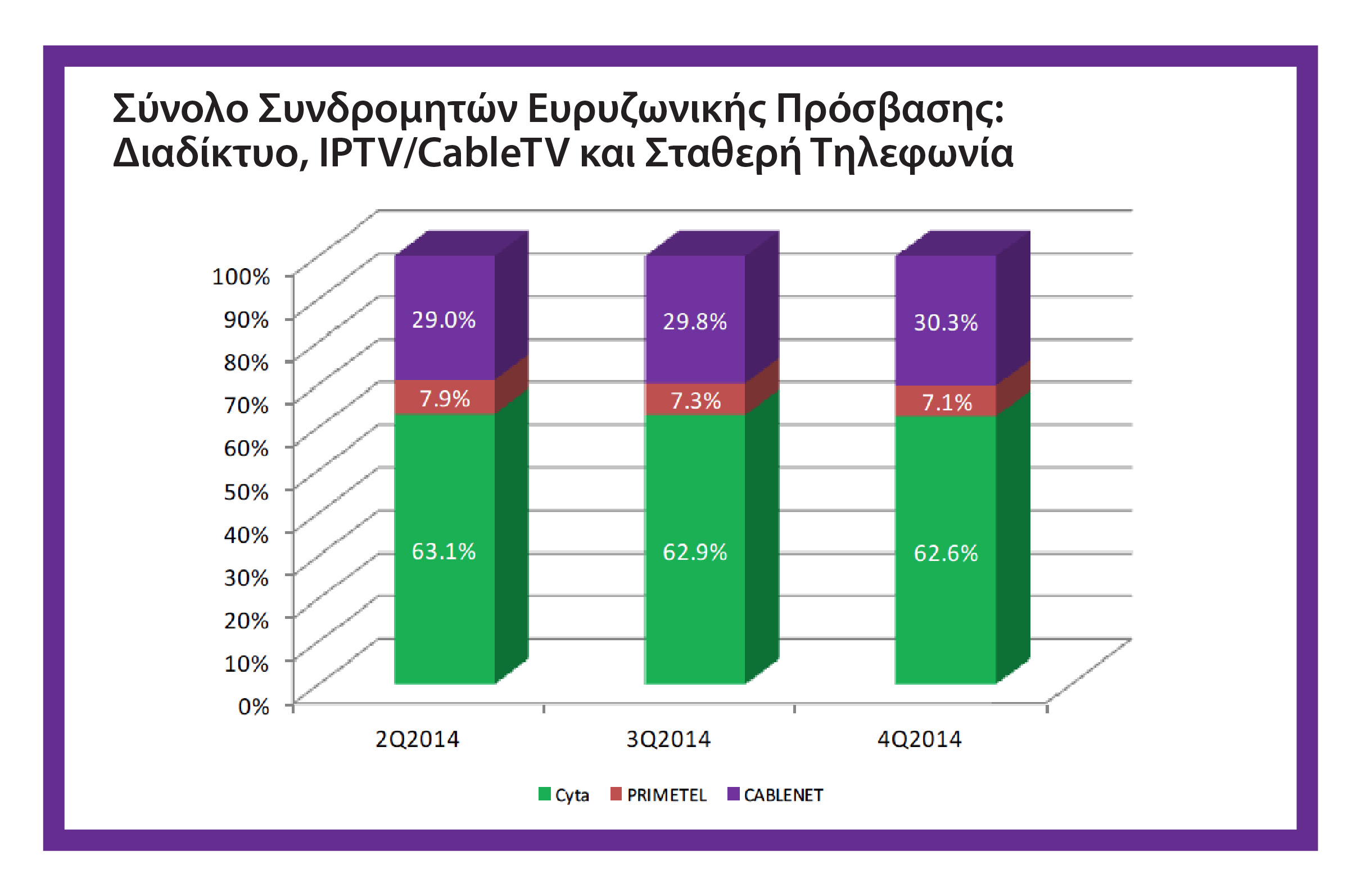 Αξίζει επίσης να σημειωθεί ότι η Cablenet, προσφέροντας προϊόντα και υπηρεσίες που ανταποκρίνονται στις σύγχρονες ανάγκες των συνδρομητών της μέσα από ένα από τα πιο ανεπτυγμένα δίκτυα στην Κύπρο, πέτυχε να είναι η μόνη εταιρεία που παρουσιάζει αύξηση και στο σύνολο συνδρομητών ευρυζωνικής πρόσβασης καταγράφοντας μερίδιο αγοράς που φτάνει στο 19,1%.