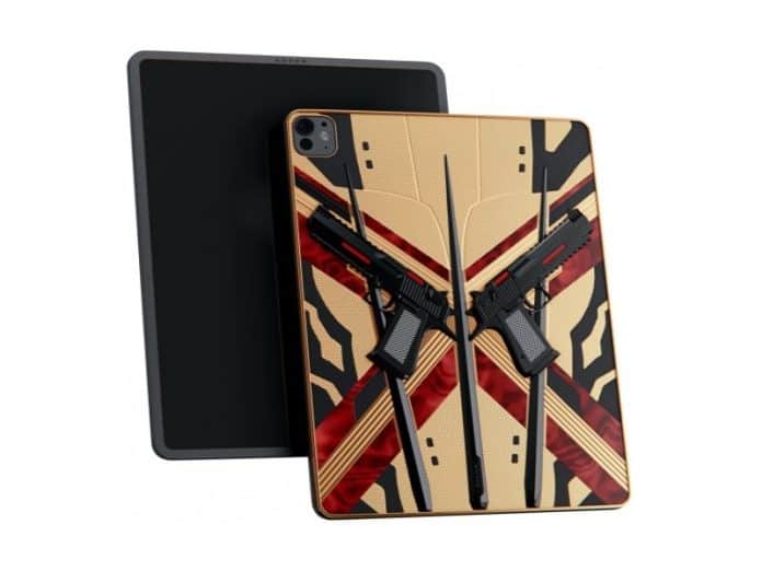 Το Caviar iPad Pro 2024 Criss-Cross – μέρος της συλλογής Desperado του brand – ενσωματώνει χαρακτηριστικά το δημοφιλές όπλο Desert Eagle Mark XIX. Υπάρχουν δύο από αυτά στο πίσω μέρος του tablet, σχηματίζοντας το γράμμα «X», καθώς το σχέδιο είναι εμπνευσμένο από τον Deadpool. Τα νύχια που υπάρχουν γύρω από τα όπλα είναι εμπνευσμένα από τον Wolverine. Για όσους δεν γνωρίζουν, και οι δύο αυτοί δημοφιλείς χαρακτήρες θα πρωταγωνιστήσουν στην ταινία Deadpool & Wolverine, που πρόκειται να βγει στις αίθουσες τον Ιούλιο.