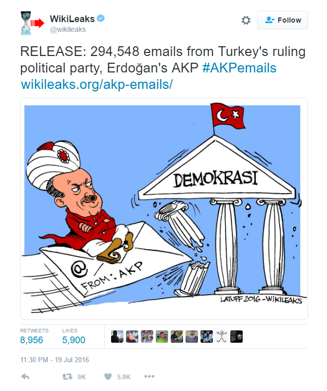 Όπως σημειώνει το Wikileaks, το υλικό πέρασε στην κατοχή τους μία εβδομάδα πριν την απόπειρα πραξικοπήματος και δε συνδέεται με αυτό. Το site πάντως επιβεβαιώνει ότι η πρόσβαση πλέον στη σελίδα του δεν είναι εφικτή από όσους βρίσκονται στην Τουρκία.