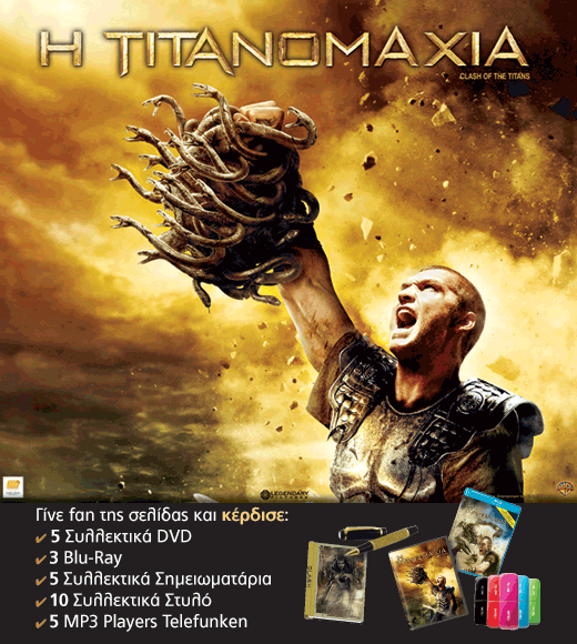 Μπες στο http://www.facebook.com/pages/Clash-of-the-Titans/110299772360319?v=app_4949752878&ref=notif κάνε like και μπες κι εσύ στον κόσμο της Τιτανομαχίας. Ο διαγωνισμός λήγει στις 30 Σεπτεμβρίου.