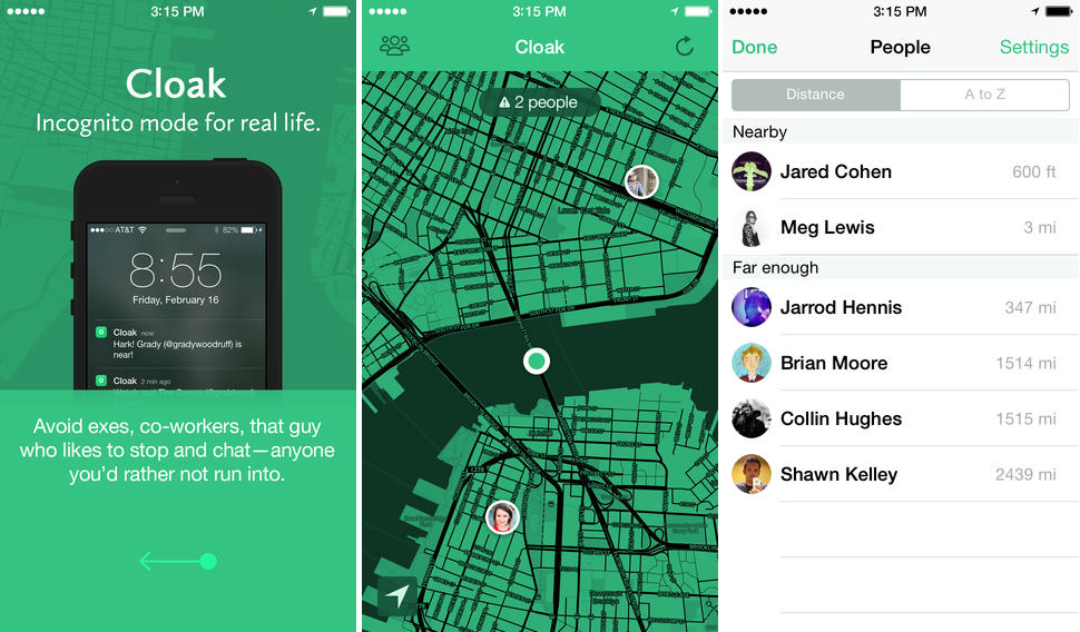 Είναι απλό. Το Cloak app για iOS κάνει ακριβώς το αντίθετο από τα Social Media. Προσπαθεί να απομακρύνει τους ανθρώπους και συγκεκριμένα να τους ωθήσει να αποφύγουν άλλους ανθρώπους, με τους οποίους δε θέλουν να συναντηθούν ούτε τυχαία. Ονομάστε τους πρώην συντρόφους, συναδέλφους, ή όπως αλλιώς θέλετε εσείς.