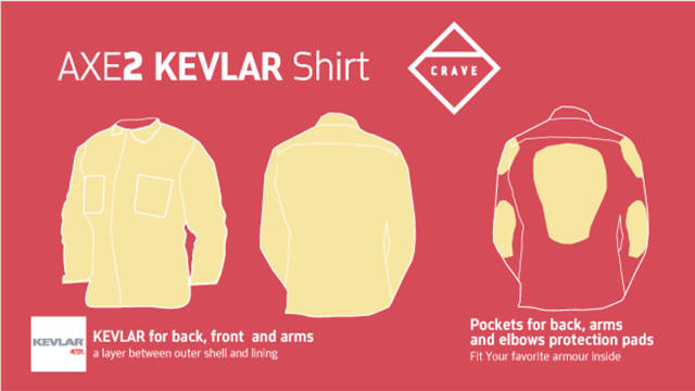 H Crave παρουσιάζει μία λύση για όσους έχουν κουραστεί από τα “βαριά” μπουφάν που πρέπει να φορούν οδηγώντας μία μοτοσικλέτα. Ιδού το Axe 2 Kevlar Shirt.