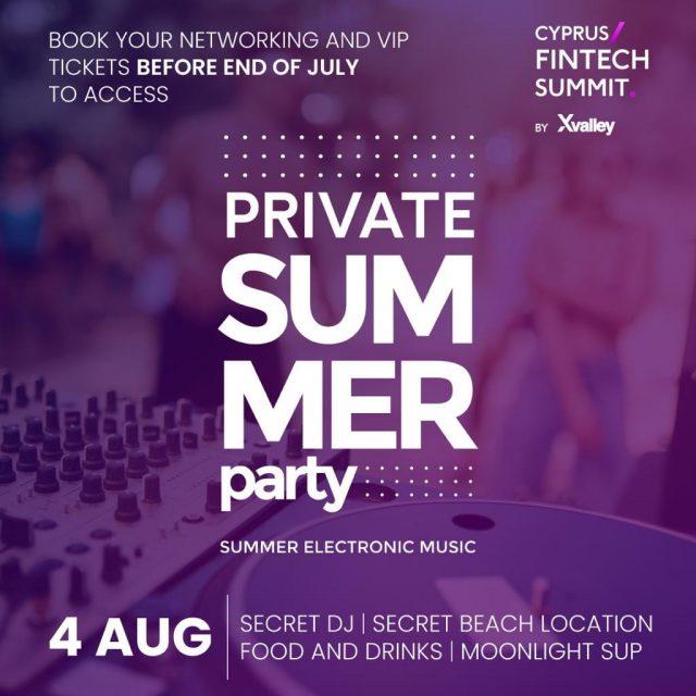 Το Cyprus Fintech Summit προσφέρει επίσης την ευκαιρία δικτύωσης και πρόσβασης VIP στην προσυνεδριακή ειδική εκδήλωση (πάρτυ γνωριμίας) που θα πραγματοποιηθεί στις 4 Αυγούστου. Με την κράτηση “networking” και “VIP” εισητηρίων, η οποία πρέπει να γίνει πριν από τα τέλη Ιουλίου, οι συμμετέχοντες θα έχουν τη δυνατότητα να συναναστραφούν με κορυφαίους επαγγελματίες, και να ζήσουν την απόλυτη εμπειρία του κόσμου της Fintech.