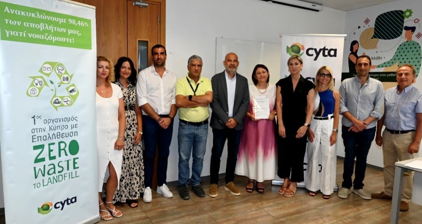 Οκτώ χρόνια ως πρωτοπόρος Οργανισμός με Μηδενικά Απόβλητα στις Χωματερές, συμπλήρωσε η Cyta, λαμβάνοντας και φέτος για 8η συνεχή χρονιά το πιστοποιητικό «Zero Waste to Landfill».