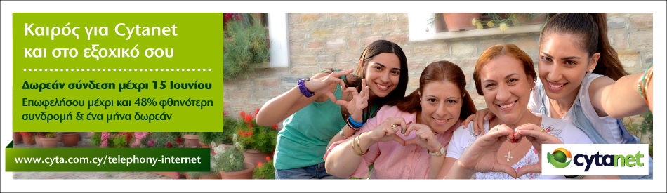 Δωρεάν σύνδεση Cytanet μέχρι τις 15 Ιουνίου προσφέρει η Cyta, σε νέους και υφιστάμενους πελάτες της. Σημειώνεται επίσης ότι η Cytanet, ενόψει και της καλοκαιρινής περιόδου, προτρέπει τους πελάτες της να αξιοποιούν τις οικονομικές λύσεις που τους προσφέρει για πρόσβαση στο διαδίκτυο και από το εξοχικό τους.