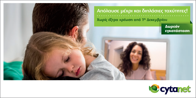 Πιο συγκεκριμένα, από την 1η Δεκεμβρίου 2015 τα προϊόντα της Cytanet θα αναβαθμιστούν αυτόματα, έτσι ώστε όλοι οι πελάτες να απολαμβάνουν μέχρι και διπλάσιες ταχύτητες, χωρίς καμία επιπρόσθετη χρέωση. Σημειώνεται ότι η αναβάθμιση αφορά όλα τα ευρυζωνικά προϊόντα Internet, DSL Access, και IP-VPN, μέσω DSL Access, και στοχεύει στο να βελτιώσει ακόμη περισσότερο την εμπειρία στη χρήση του διαδικτύου και να εξυπηρετήσει αξιόπιστα τις συνεχώς αυξανόμενες ανάγκες των πελατών.