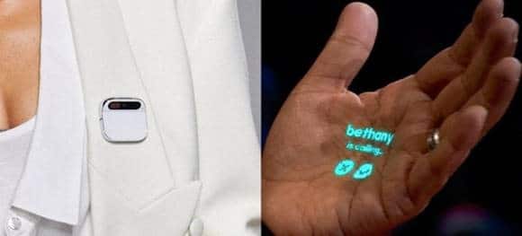 Πρόκειται για το Ai Pin, ένα μικρό μαγνητικό μενταγιόν με AI που τοποθετείται στο πέτο ή σε κάποιο άλλο σημείο ενός ρούχου και αποτελείται από έναν προβολέα λέιζερ και ένα μικρόφωνο 360 μοιρών. Οι πληροφορίες εμφανίζονται στην παλάμη του χρήστη της συσκευής η οποία μετατρέπεται αυτομάτως σε οθόνη.