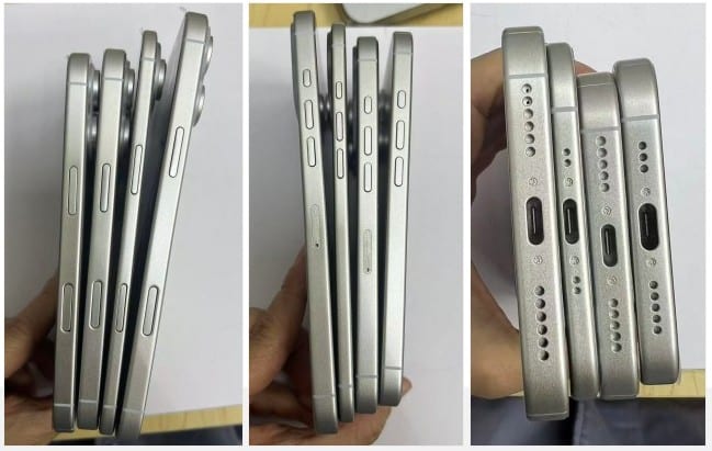 Οι διαρροές δείχνουν και τα τέσσερα μοντέλα της σειράς iPhone 17 (Air, 17, 17 Pro και 17 Pro Max) το ένα πάνω στο άλλο, με το Air να ξεχωρίζει με διαφορά. Είναι τόσο λεπτό, που σχεδόν δεν υπάρχει χώρος για τα πλαϊνά κουμπιά ή τη θύρα USB-C στη βάση του.