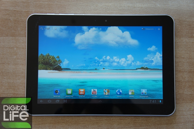 Ακόμη και οι κάμερες είναι ίδιες με το ακριβότερο μοντέλο. Μια στα 3,2 megapixel στην πίσω όψη και άλλη μια στα 2 megapixel στην πρόσοψη. Οι φωτογραφίες είναι ικανοποιητικές και με λίγη φαντασία μπορούν ακόμη και να καρδραριστούν, χωρίς έκτροπα. Μάλιστα υπάρχει και LED φλας, το οποίο βάζει τα δυνατά του για να μην εκθέσει τον κάτοχο σε υποψήφιο νυχτερινό θέμα. Αυτό για το οποίο συνεχίζω πάντως να παραδέχομαι το Galaxy Tab είναι η οθόνη του. Τεχνολογίας PLS (κατά Samsung), εννοείται capacitive και τόσο καλή που μόνο με ένα PlayBook ή ένα iPad 2 μπορεί να συγκριθεί – φαντάσου εκείνη του 10.1 σε μικρογραφία.
