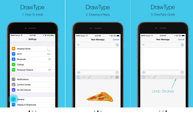 Αυτό ίσως θα μπορούσε να είναι το σλόγκαν για το νέο application για iOS 8, που σας δίνει τη δυνατότητα να απαντήσετε σε ένα μήνυμα του συνομιλητή σας…ζωγραφίζοντας! Με μόλις 0,89 ευρώ μπορείτε να σκιτσάρετε απαντώντας στα μηνύματα. Με το DrawType, εσείς παίρνετε απλά ένα λευκό καμβά στην οθόνη σας και, χρησιμοποιώντας χρώματα, κάνετε μοναδικές ζωγραφιές που σχετίζονται με τις απαντήσεις σας.