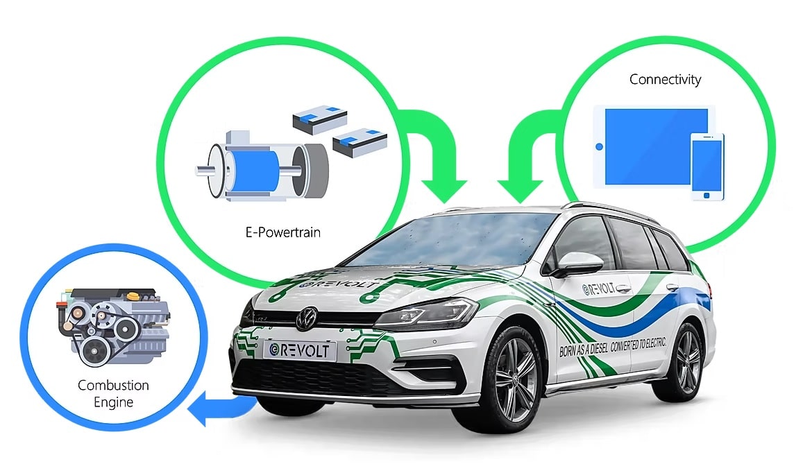 Μια γερμανική start-up, η e-Revolt, έχει βάλει στόχο να προωθήσει την ηλεκτροκίνηση χωρίς να χρειάζεται αντικατάσταση του στόλου οχημάτων. Η όλη ιδέα της νεοφυούς αυτής εταιρείας για μετατροπή των μεταχειρισμένων αυτοκινήτων με κινητήρες εσωτερικής καύσης, σε αμιγώς ηλεκτρικά, βρήκε πολλούς υποστηρικτές στη Γερμανία, καθώς η πρότασή της καθιστά την ηλεκτροκίνηση προσιτή στο ευρύ κοινό, μιας και οι ιδιοκτήτες οχημάτων συμβατικής τεχνολογίας δεν χρειάζεται να πάρουν καινούργιο αυτοκίνητο για να ασπαστούν την ηλεκτροκίνηση. Επιπλέον, η μετατροπή διαρκεί μόλις μία μέρα.
