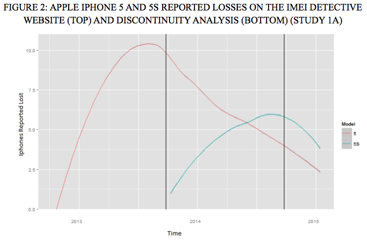 Όπως εύστοχα μπορείτε να παρατηρήσετε και στο γράφημα που ακολουθεί, ο αριθμός των iPhone 5 συσκευών που αναφέρονται ως χαμένες (κόκκινη γραμμή στο γράφημα) αυξάνει σημαντικά τον Αύγουστο, που είναι πολύ κοντά στις 30 Σεπτεμβρίου όταν το iPhone 5S παρουσιάστηκε από την Apple. Κατά παρόμοιο τρόπο, το iPhone 6 παρουσιάστηκε στις 19 Σεπτεμβρίου του 2014, κοντά στο διάστημα που ο αριθμός των χαμένων συσκευών iPhone 5S αυξάνει αρκετά (μπλέ γραμμή στο γράφημα).