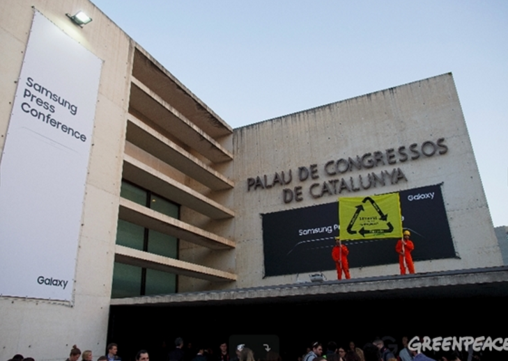 Ακτιβιστές της Greenpeace διέκοψαν το χθεσινό event της Samsung στο MWC 2017, διαμαρτυρόμενοι για τον τρόπο διαχείρισης των εκατομμυρίων ανακληθέντων Galaxy Note 7 που πρέπει να συναντήσουν το δρόμο των απορριμάτων. Και ενώ ο επικεφαλής marketing της Samsung Europe, David Lowes, είχε ανέβει στη σκηνή και είχε μόλις αρχίσει το event με την ομιλία του, ένας διαδηλωτής κάθισε στα σκαλιά με μια πινακίδα που έγραφε «#Galaxy Note 7» και «Rethink, Reuse, Recycle». Η παρουσία του, έκανε τον David Lowes να του απαντήσει ιδιαίτερα ενοχλημένος, «Καταλάβαμε τι θέλετε να μας πείτε».