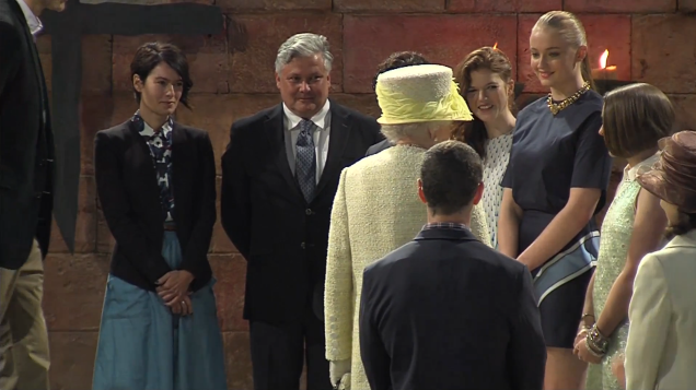 Η Βασίλισσα Ελισάβετ γνώρισε πολλούς από τους ηθοποιούς της σειράς όπως βλέπετε και στη φωτό, οι πληροφορίες, πάντως, ότι της έγινε πρόταση να συμμετέχει σε επόμενα γυρίσματα, ελέγχονται ως… ανακριβείς.