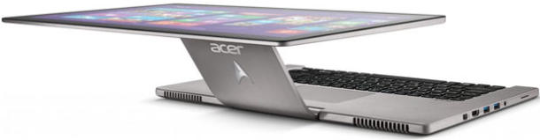 Να υπενθυμίσουμε ότι το Acer Aspire R7 είναι ένα convertible με οθόνη 15,6 ιντσών αφής, ανάλυσης 1080p, επεξεργαστή Intel Core i5 στα 1.8GHz, 500GB σκληρό δίσκο (και 24GB SSD), ενώ ενσωματώνει τα Windows 8. Η οθόνη του μπορεί να περιστραφεί προς όλες τις κατευθύνσεις χάρη σε ειδικό μηχανισμό της Acer ώστε να μετατρέπεται ακόμη και σε tablet.