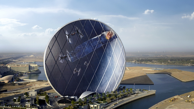 Η εταιρεία twofour54 μεταμόρφωσε έναν εντυπωσιακό κυκλικό ουρανοξύστη στο Abu Dhabi στον… πλανήτη-υπερόπλο StarKiller Base του Star Wars: The Force Awakens, χάρη σε ένα εντυπωσιακό installation στις κεντρικές εγκαταστάσεις της εταιρείας Aldar στην πόλη των Ηνωμένων Αραβικών Εμιράτων.