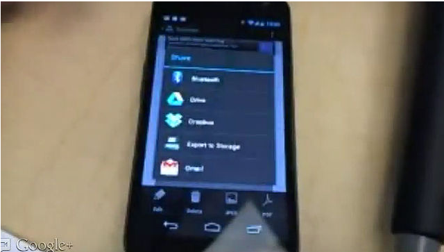 Κατά τη διάρκεια του hangout, ένας (πιθανόν) υπάλληλος της Google χρησιμοποιεί μία εφαρμογή με δυνατότητες διαμοιρασμού, αλλά επιστρέφοντας στην λίστα εφαρμογών, μπορεί κανείς να δει το «τρίγωνο», το εικονίδιο που μάλλον θα υιοθετηθεί από την cloud υπηρεσία της Google και την λέξη «Drive».