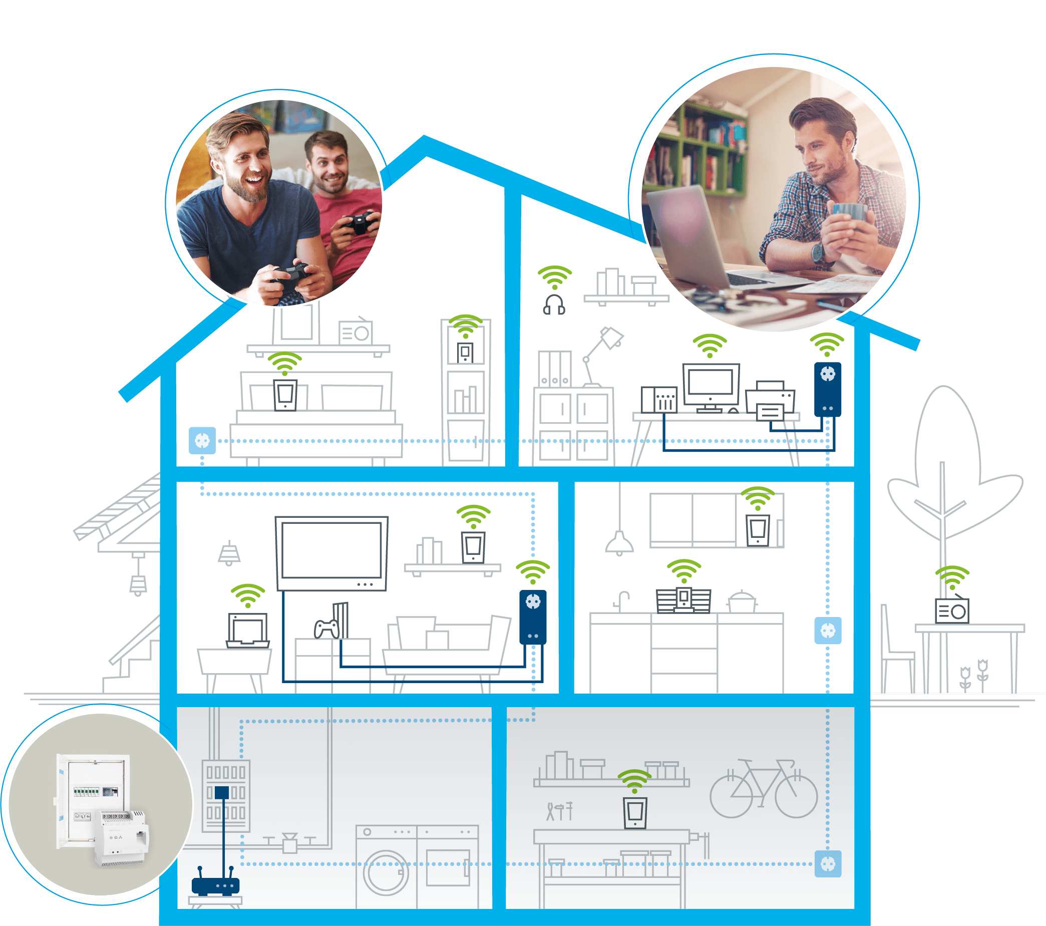 Υπάρχουν αρκετές περιπτώσεις που το devolo Magic 2 LAN DINrail θα σας φανεί χρήσιμο. Αν, για παράδειγμα, έχετε τριφασικό ρεύμα, είναι ο μοναδικός τρόπος να συνδεθούν οι τρεις φάσεις σε μία ώστε να μεταφέρεται το Internet όπου το χρειάζεστε με τη βοήθεια των προσαρμογέων powerline της devolo. Επίσης, αν ο ηλεκτρολογικός πίνακας είναι στον ίδιο χώρο με το router, τότε είναι ένας πολύ εύκολος τρόπος να ξεκινήσετε την εγκατάσταση για τα «μαγικά» προϊόντα της devolo.