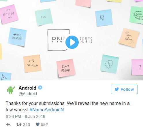 H Google είχε ζητήσει πριν λίγο καιρό, κατά τη διάρκεια του συνεδρίου προγραμματιστών της Google I/O 2016, τη “βοήθεια του κοινού” για την ονομασία του Android N και τώρα αποκαλύπτει επίσημα ότι η ονομασία της νέας έκδοσης του λειτουργικού της θα γίνει γνωστή μέσα σε μερικές εβδομάδες.