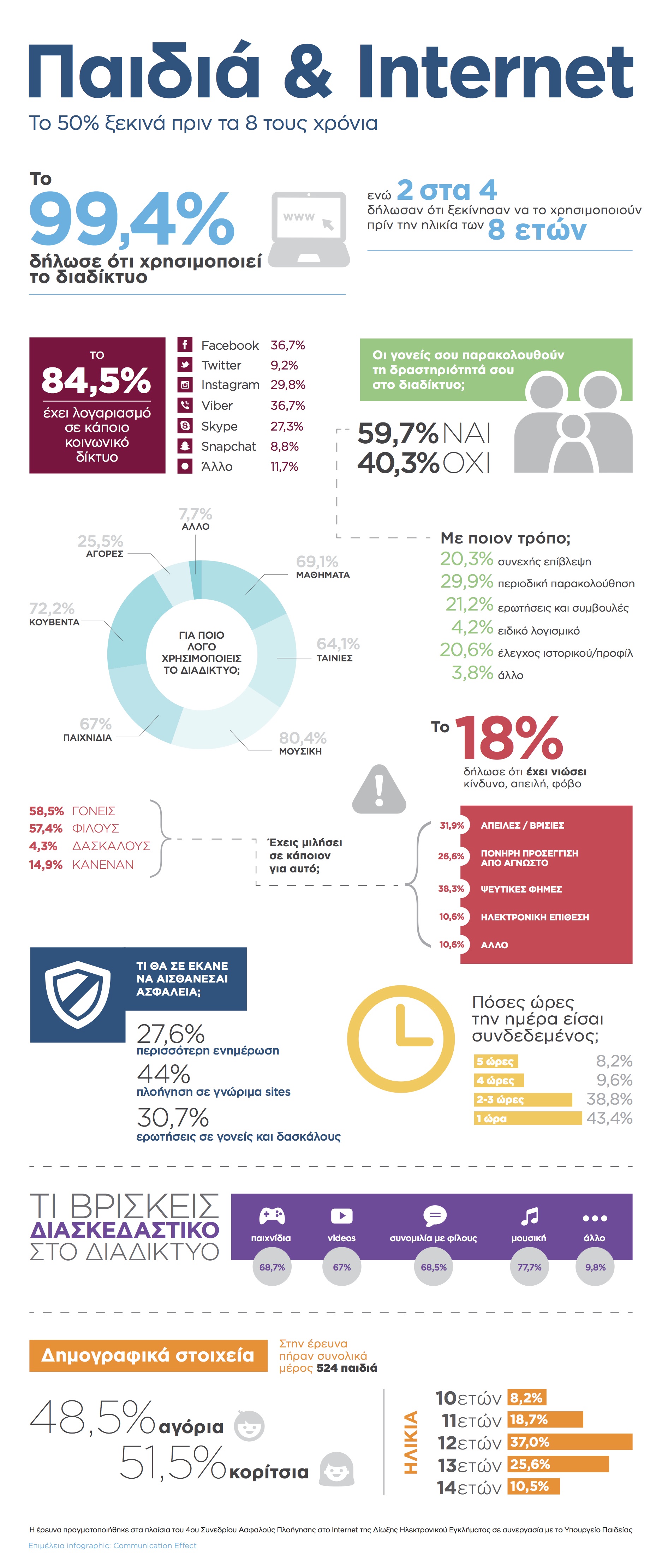 · Το 50% των παιδιών άρχισε να χρησιμοποιεί το διαδίκτυο σε ηλικία μικρότερη των 8 ετών.