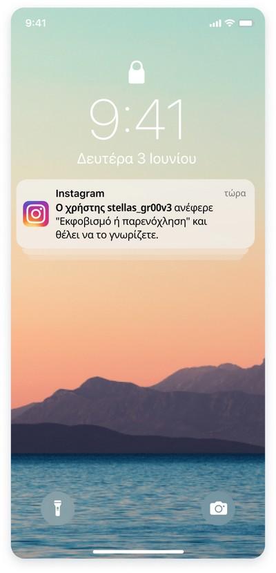 -Eιδοποιούνται όταν ο έφηβος τους επιλέγει να μοιραστεί ότι έχει αναφέρει έναν λογαριασμό ή μια ανάρτηση, συμπεριλαμβανομένου του ποιος αναφέρθηκε και του τύπου περιεχομένου.