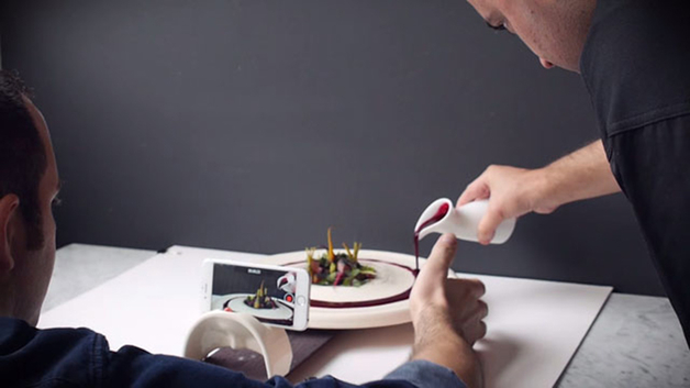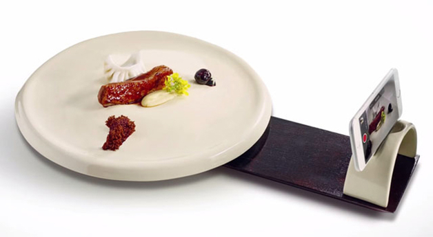 Δύο τύποι από πιάτα έχουν σχεδιαστεί ειδικά ώστε να διευκολύνουν τη φωτογράφισή των φαγητών με τη βοήθεια του smartphone σας. Πρόκειται για το “Limbo” με υποδοχή στο μπροστινό μέρος ώστε να σταθεροποιήσετε το smartphone σας αλλά και το “360” που, όπως υποδηλώνει το όνομά του, διαθέτει μία περιστρεφόμενη πλάκα για το πιάτο δίπλα σε μία υποδοχή για το smartphone, που προσφέρει αποτέλεσμα χωρίς προηγούμενο και ακόμη και… videos 360 μοιρών του φαγητού σας!