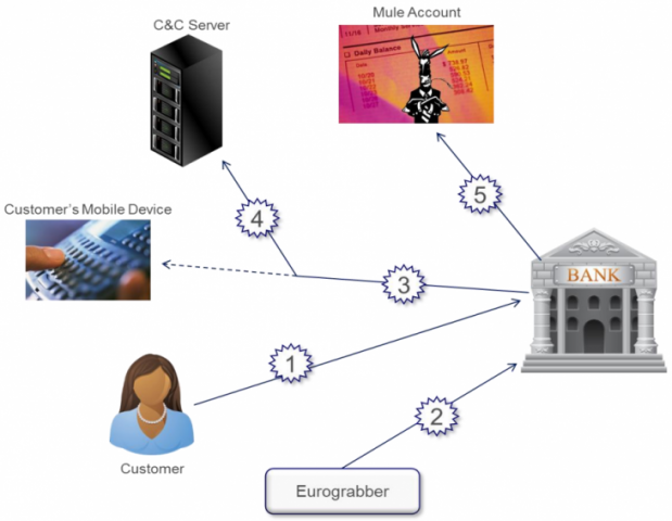 Η μεγάλης κλίμακας «ληστεία» χρησιμοποίησε το σύστημα Eurograbber, σύστημα που επιτίθεται σε PC και κινητά, σε συνδυασμό με έναν Command and Control server. Χρησιμοποιήθηκε το Trojan Zeus, ένα Trojan που είναι αρκετά γνωστό και δημοφιλές ανάμεσα στους «black hat hackers», ως Trojan που καταγράφει τα πλήκτρα που πατάμε στις συσκευές μας.