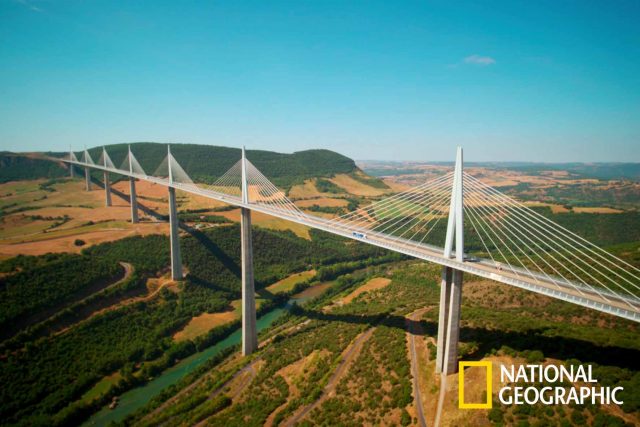 Το Παρίσι είναι η πιο πυκνοκατοικημένη πόλη της Ευρώπης με 54.000 κατοίκους ανά τετραγωνικό μίλι. Οι εναέριες λήψεις του National Geograhic εντοπίζουν το κρυφό μυστικό της γαλλικής πρωτεύουσας: μια πράσινη όαση πολύ υψηλότερα από τους πολυσύχναστους δρόμους της πόλης. Για πρώτη φορά αποκαλύπτεται η εναέρια εικόνα της μεγαλύτερης αστικής φάρμας στον κόσμο, που δημιούργησε μια ομάδα γεωπόνων στην ταράτσα ενός κτιρίου, στα πλαίσια του project ελαχιστοποίησης της διαδρομής τροφίμων στη Γαλλία. Στη Νότια Γαλλία, η οδογέφυρα Millau αποτελεί την ψηλότερη γέφυρα του κόσμου και ένα από τα μεγαλύτερα μηχανικά επιτεύγματα στην ιστορία. Αλλά πώς γίνεται η συντήρηση μιας τέτοιας γέφυρας; Οι τηλεθεατές παρακολουθούν μέσα απο εναέρια πλάνα τις επισκευές που γίνονται στις λάμπες κάτω από το οδόστρωμα, αλλά και τους ελέγχους που πραγματοποιούνται για να διασφαλίσουν ότι τα οχήματα προστατεύονται από τους κεραυνούς που χτυπούν τους τεράστιους πύργους της γέφυρας κάθε χρόνο.