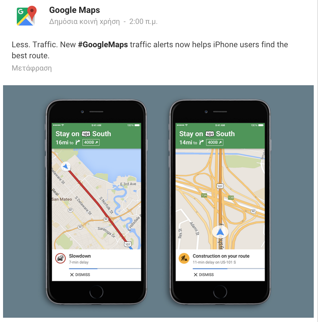 Ένα χαρακτηριστικό που οι κάτοχοι Android συσκευών και χρήστες της εφαρμογής Google Maps είχαν ήδη, αποκτούν τώρα οι iOS users. Συγκεκριμένα, οι χάρτες της Google θα ειδοποιούν τους χρήστες φωνητικά για νέα κίνησης, κατά τη διάρκεια πλοήγησής τους.