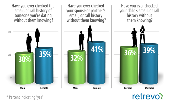 Σύμφωνα με έρευνα που δημοσιεύτηκε στο site Retrevo, ένα μεγάλο ποσοστό των αγαπημένων σας προσώπων, όπως το έτερον ήμισυ ή οι γονείς σας, υποκλέπτουν προσωπικές σας πληροφορίες χωρίς να το γνωρίζετε. Όπως προκύπτει από την έρευνα, που έγινε σε πάνω από 1000 άτομα, το 33% των ερωτηθέντων παραδέχονται ότι έχουν υποκλέψει ψηφιακά δεδομένα χωρίς να το γνωρίζει ο σύντροφός τους. Στα παντρεμένα ζευγάρια δε, το ποσοστό ανεβαίνει στο 37%. Οι γονείς, ωστόσο, αποδεικνύονται ακόμη χειρότεροι: το 39% των μητέρων και το 36% των πατέρων ανέφεραν ότι έχουν πραγματοποιήσει “ψηφιακή υποκλοπή” στα παιδιά τους. Το 59% των γονέων, επίσης, δήλωσαν ότι η παρακολούθηση της τοποθεσίας που βρίσκονται τα παιδιά τους με μία υπηρεσία μέσω κινητού τηλεφώνου δε θα αποτελούσε γι’ αυτούς πρόβλημα. Μετά απ’ όλα αυτά, άντε να εμπιστευτείς το δικό σου άνθρωπο…