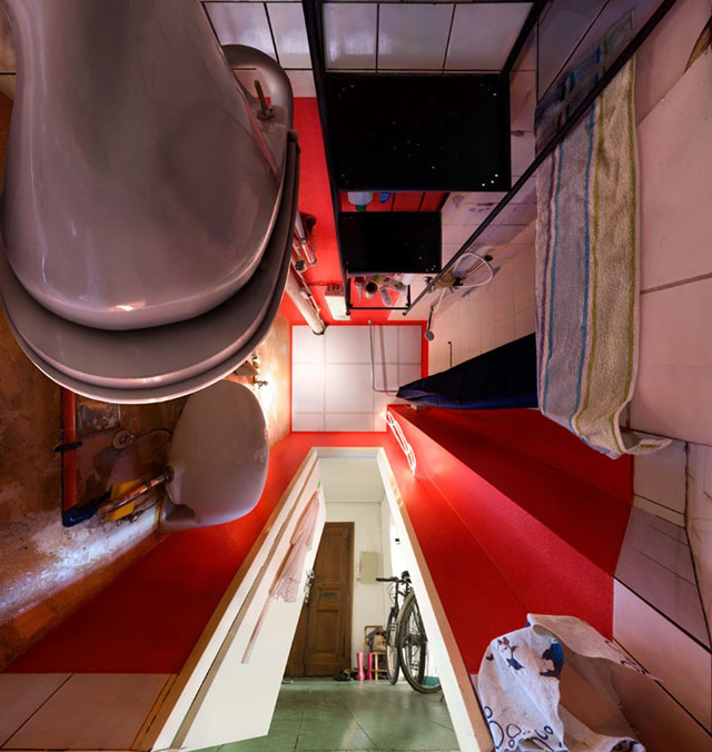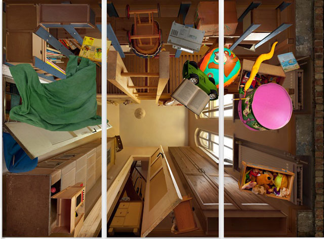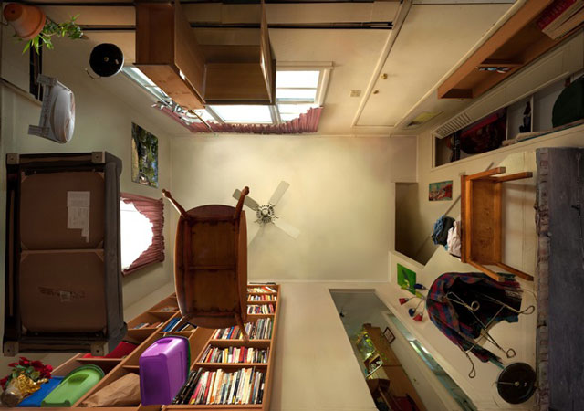Το αποτέλεσμα είναι άκρως εντυπωσιακό και, αν αναρωτιέστε πώς ακριβώς μπορεί να το πετύχει αυτό ο καλλιτέχνης, να σας πούμε ότι, όχι, δεν τοποθετεί τα αντικείμενα σε κάποιο… διαφανές πάτωμα, αλλά τα φωτογραφίζει ένα-ένα από κάτω και, στη συνέχεια, συνθέτει την εικόνα που βλέπετε και δημιουργεί το “ολοκληρωμένο” δωμάτιο.