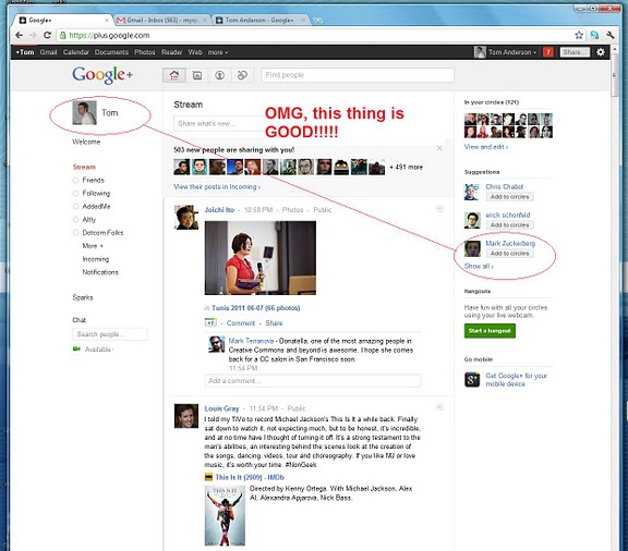 To Google+ είναι διαθέσιμο εδώ και πολύ λίγες μέρες και μάλιστα στη beta μορφή του, κι όμως έχει συγκεντρώσει το ενδιαφέρον των media αλλά και των χρηστών. Δεν είναι όμως λίγοι και εκείνοι που βλέπουν με χιουμοριστικό τρόπο τη μάχη του νέου κοινωνικού δικτύου της Google με το Facebook. Δείτε τις πιο χιουμοριστικές φωτό που βρήκαμε στο Διαδίκτυο για το θέμα, κάποιες από τις οποίες εντοπίσαμε στο Google+ page του Tom Anderson, ιδρυτή του Myspace.